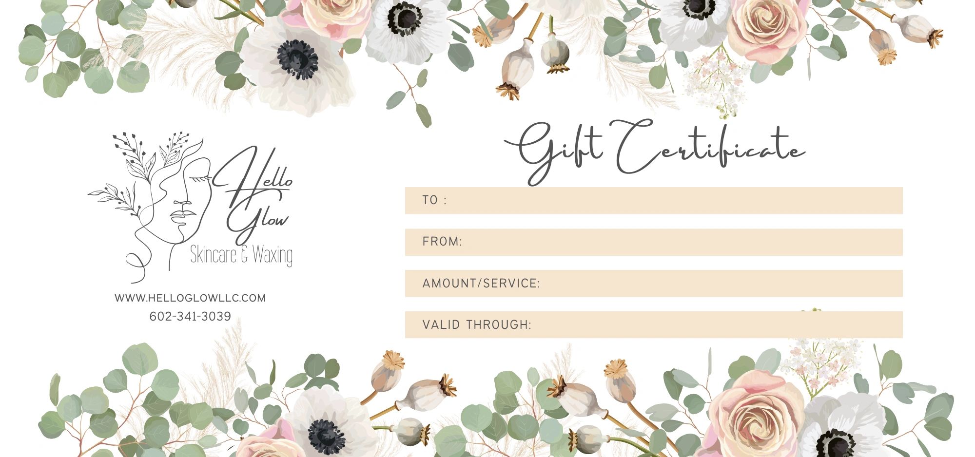 Not sure which to schedule? Give a Hello Glow LLC gift card! Our gift cards can be used to purchase any of our skincare treatments and products. Your loved one will thank you for helping them maintain their glow.